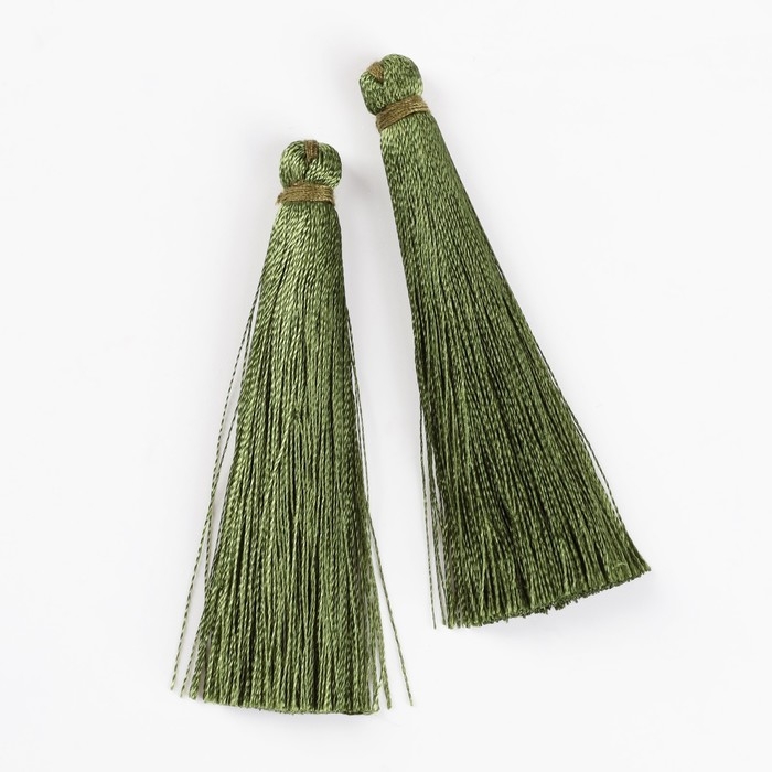 Подвеска декоративная «Кисть», набор 2 шт., L кисти 6,5 см, цвет травянисто-зелёный