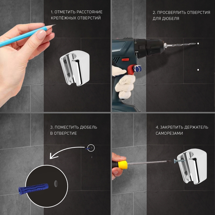Держатель для душевой лейки ZEIN Z86, пластик, цвет хром