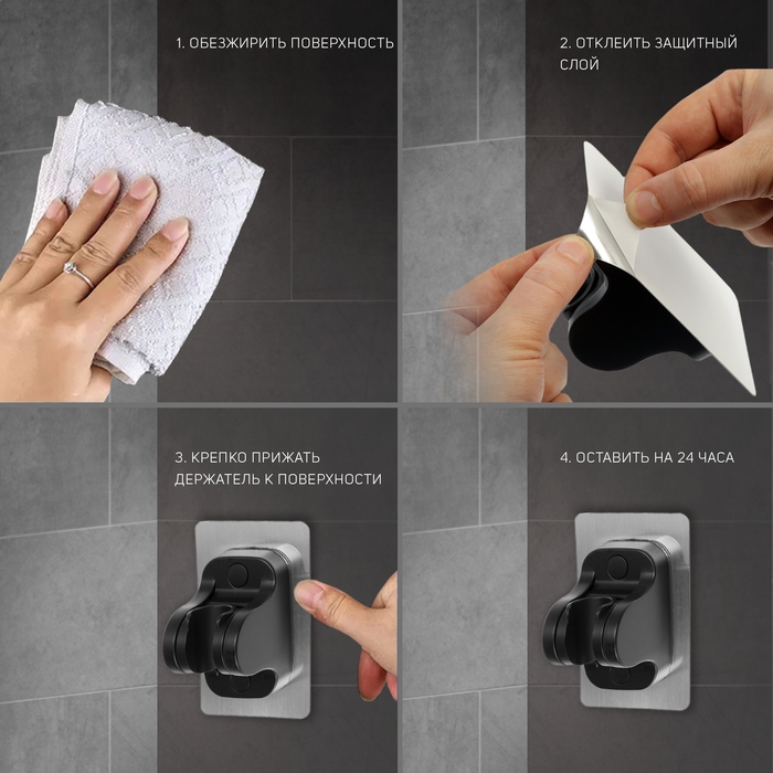Держатель для душевой лейки ZEIN Z104, регулируемый, самоклеющийся, черный