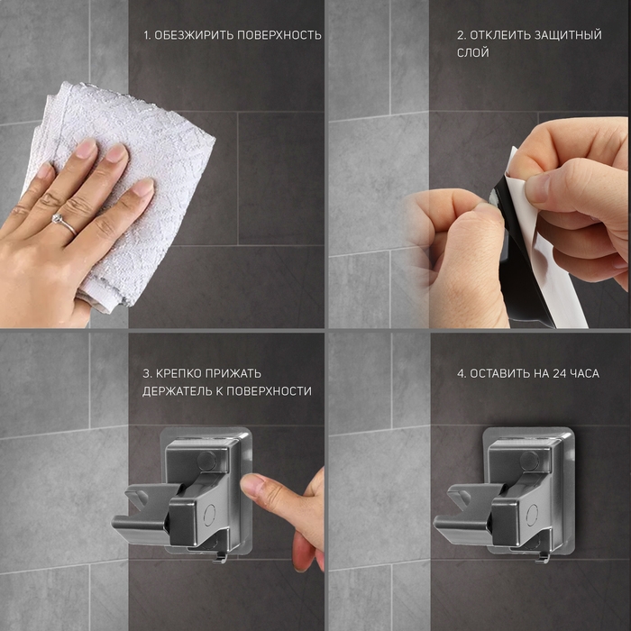 Держатель для душевой лейки ZEIN Z110, регулируемый, самоклеющийся, графит