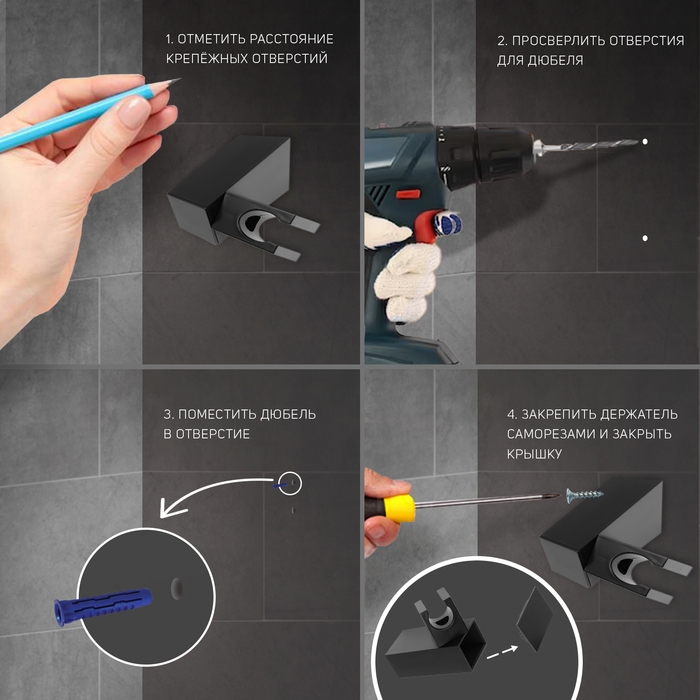 Держатель для душевой лейки ZEIN Z101, регулируемый, графит