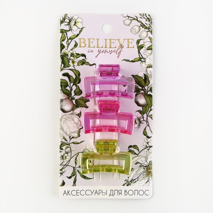 Краб для волос 3 шт. «Нежность» 3 шт, 4 х 2,5 х 2 см.