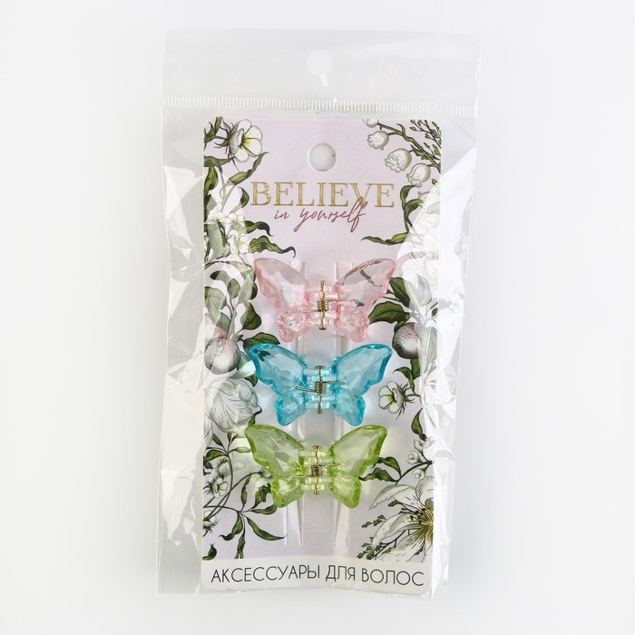 Краб для волос 3 шт. бабочки «Believe in yourself» 3 шт., 4.5 х 3 х 3 см