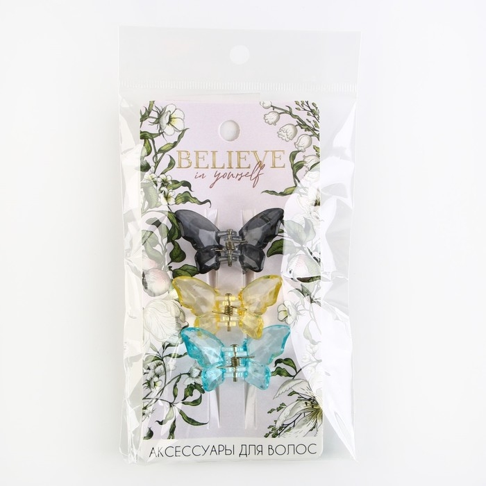 Краб для волос 3 шт. бабочки «Нежность» 4.5 х 3 х 3 см