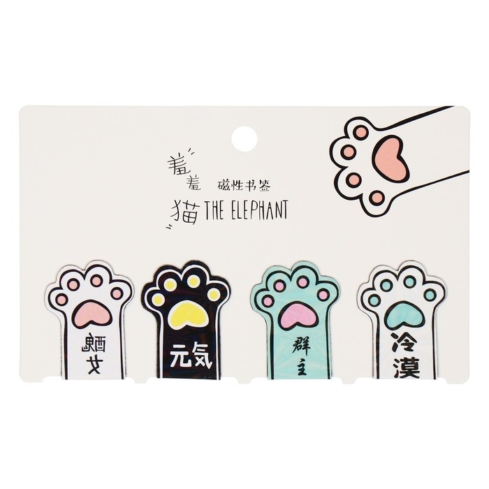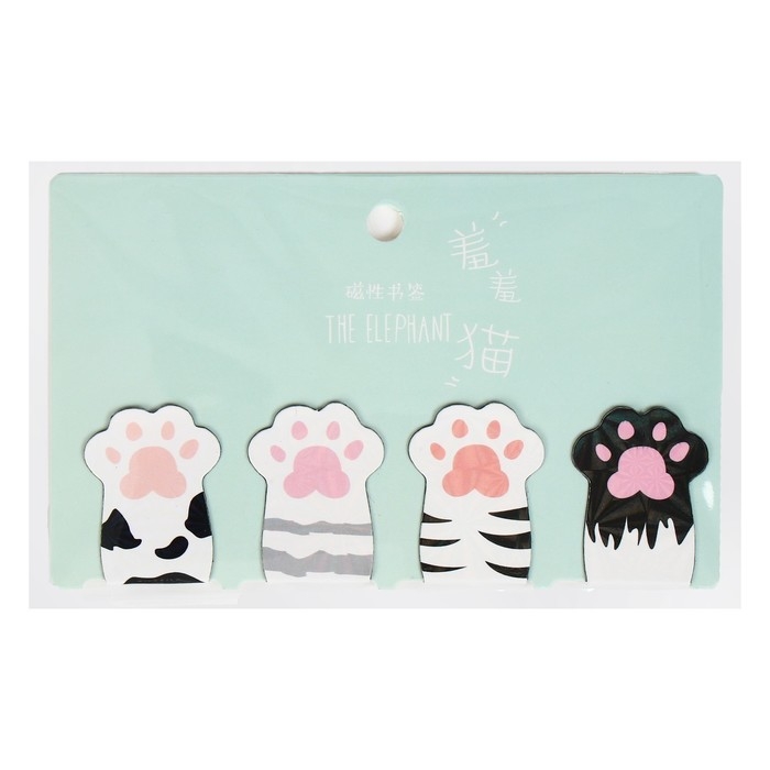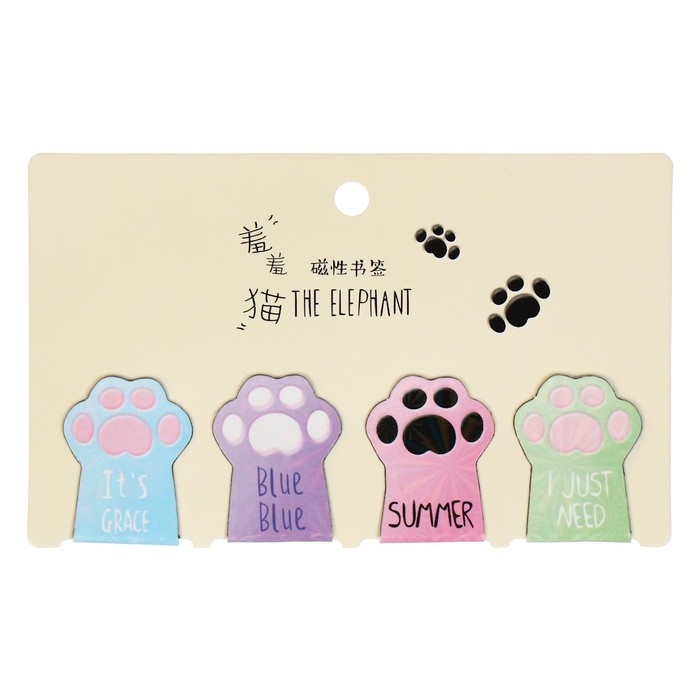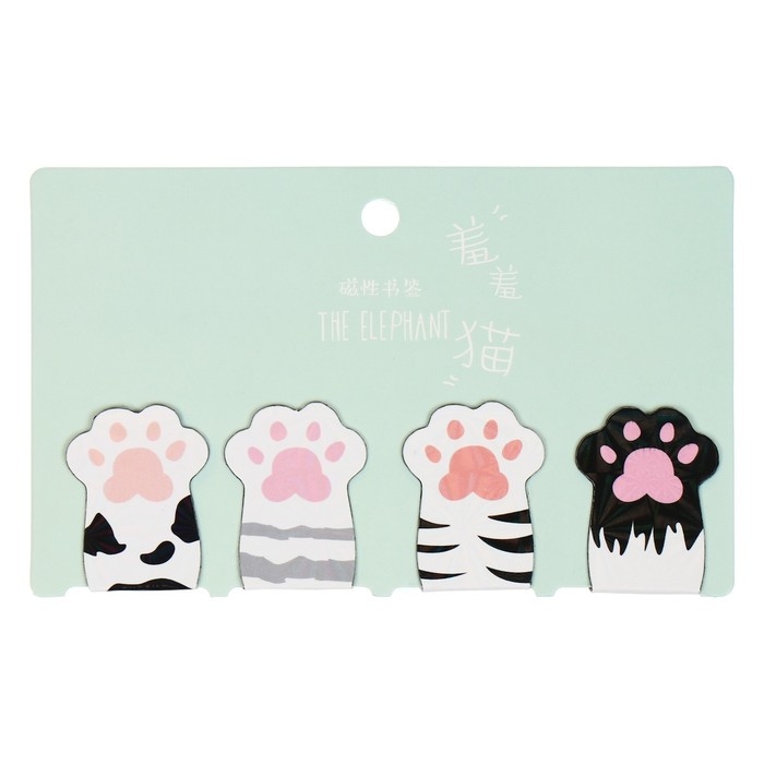 Набор магнитных закладок для книг Calligrata 4 штуки, "Лапки", МИКС
