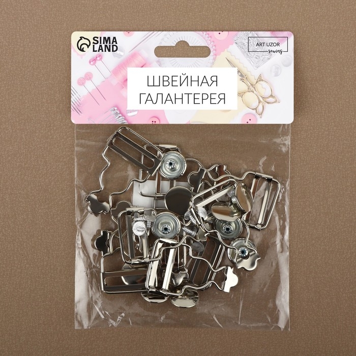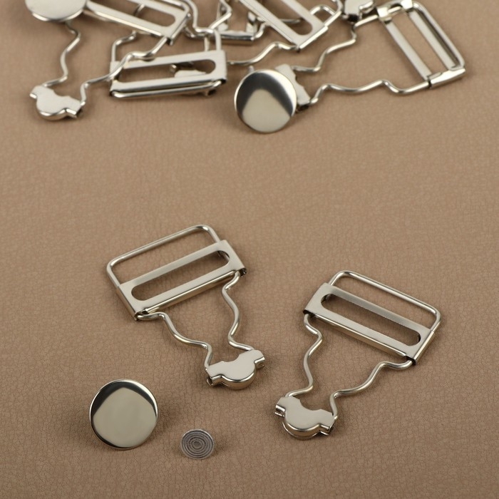Застёжки для комбинезона, с кнопками, 25 мм, 10 шт, цвет серебряный