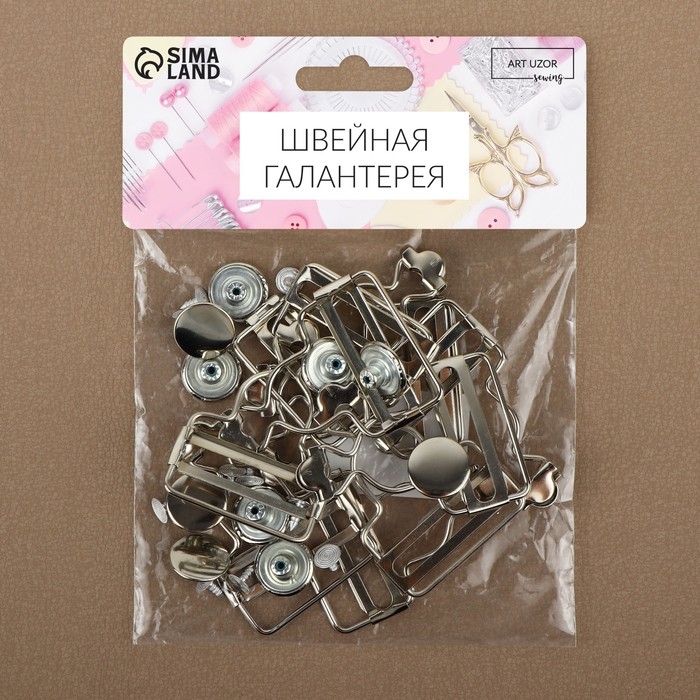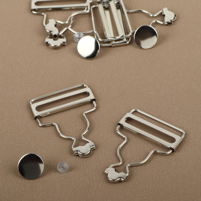 Застёжки для комбинезона, с кнопками, 38 мм, 10 шт, цвет серебряный