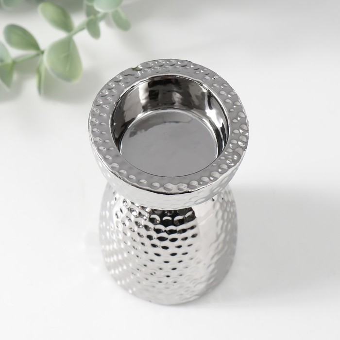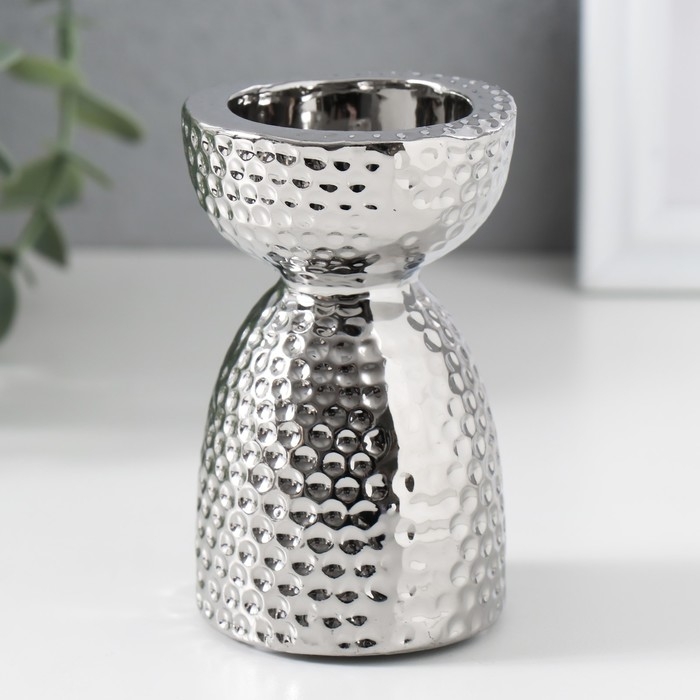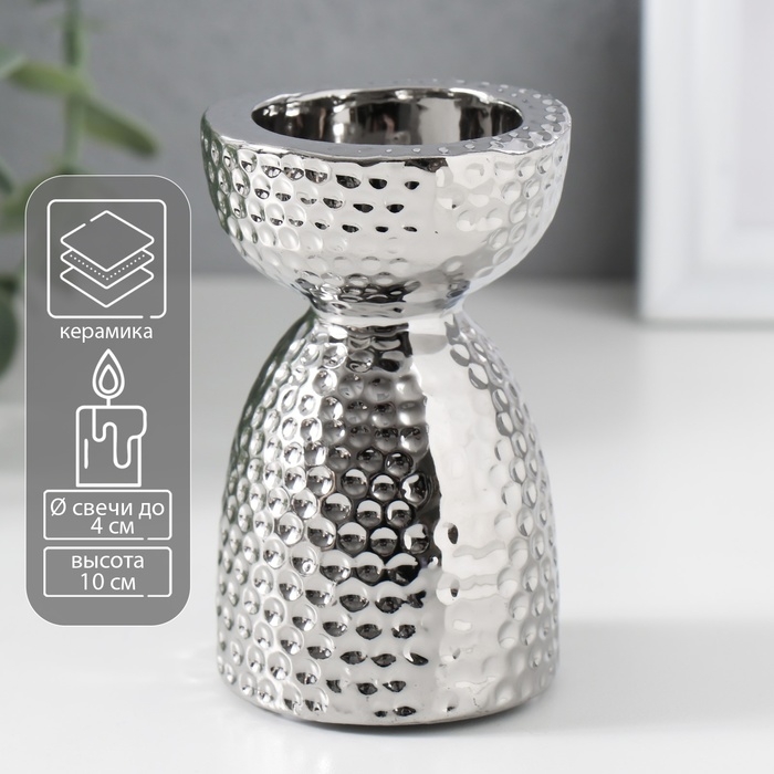 Подсвечник керамика на 1 свечу "Иллюзия" d=4 см серебро 6,5х6,5х10 см