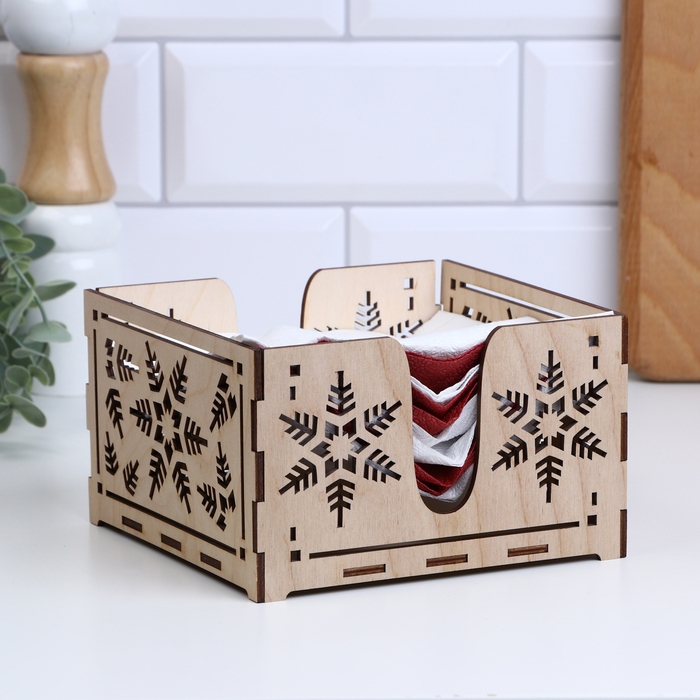 Салфетница деревянная "Снежинка", 13 х 13 х 10 см