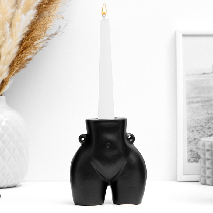 Подсвечник "Марта" черный глянец, 10х6х8см