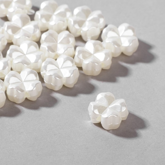Бусины пластиковые «Клевер», набор 50 шт., 1,2×1,2×0,5 см, цвет белый