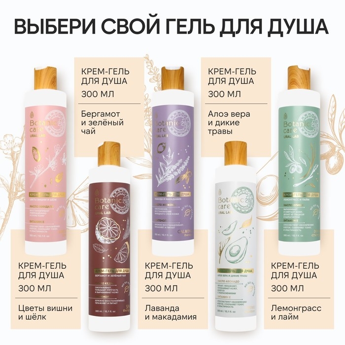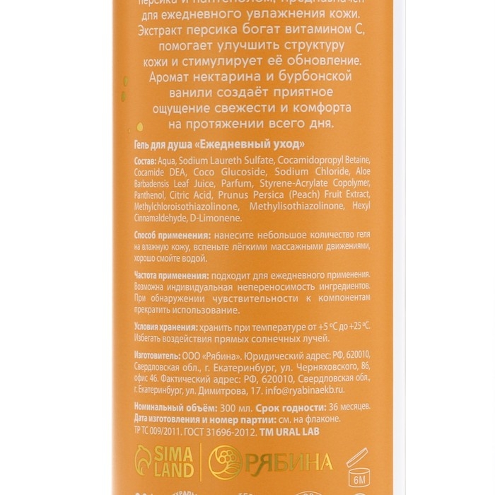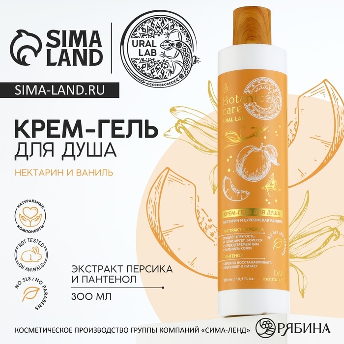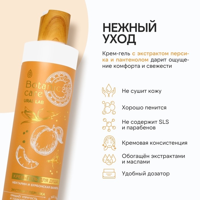 Гель для душа с экстрактом персика и пантенолом, 300 мл, аромат нектарина и ванили, BOTANIC CARE by URAL LAB