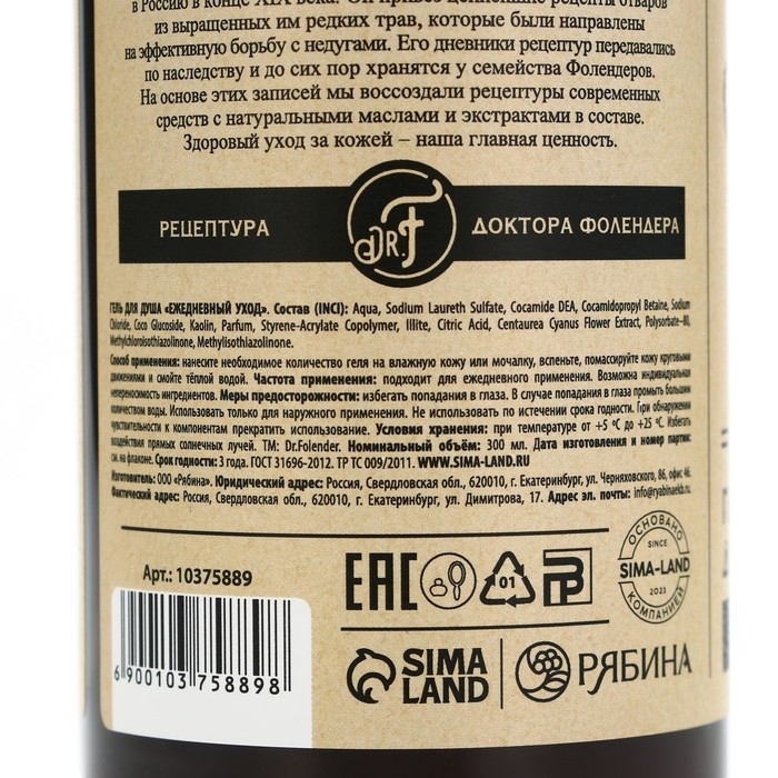 Гель для душа с экстрактом васильска, тонус и омоложение, 300 мл, DR.FOLENDER