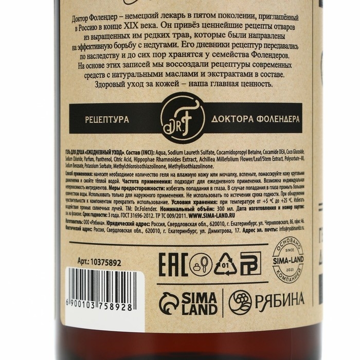 Гель для душа с экстрактом облепихи, питание и смягчение, 300 мл, DR.FOLENDER