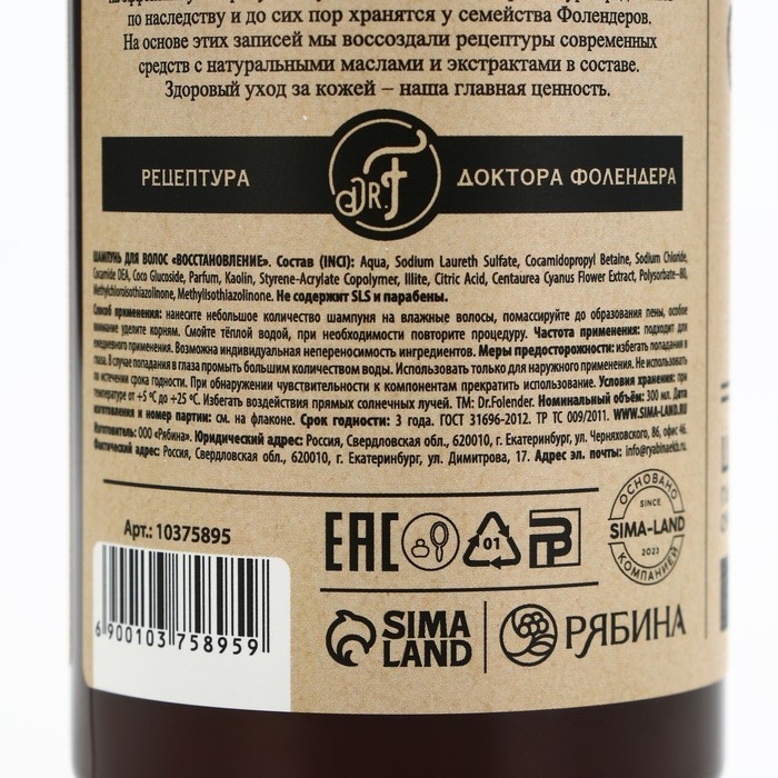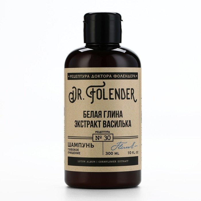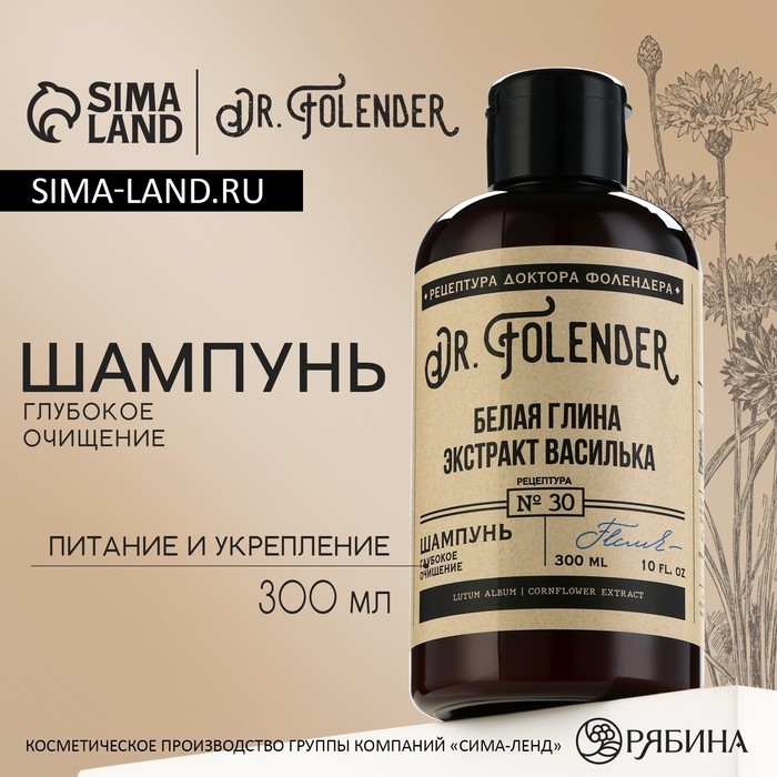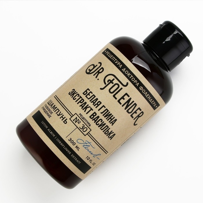 Шампунь для волос с белой глиной и экстрактом василька, глубокое очищение, питание и укрепление, 300 мл, DR.FOLENDER