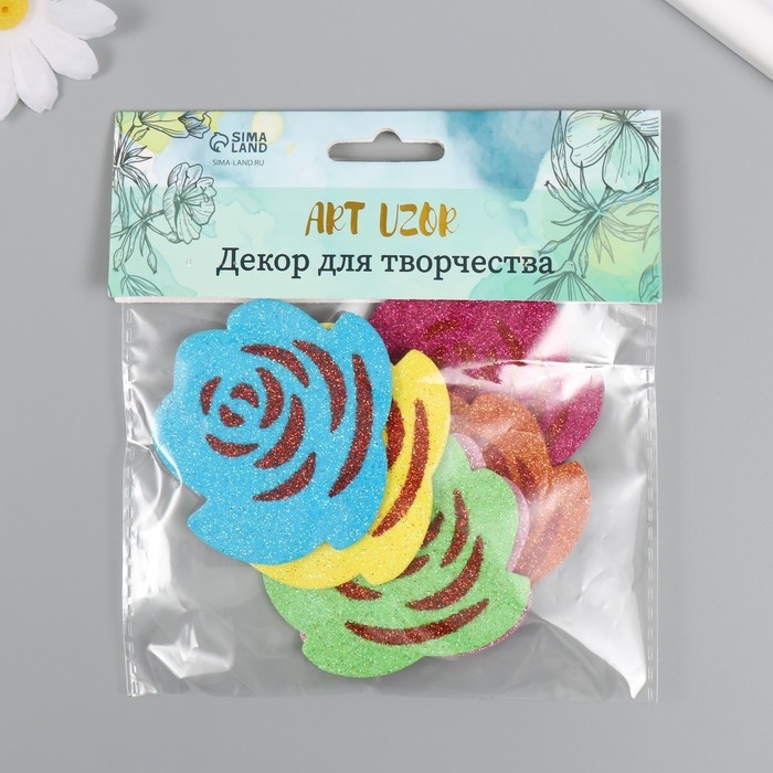 Декор для творчества EVA "Розы" 7х6х0,2 см блёстки набор 6 шт 13х15 см