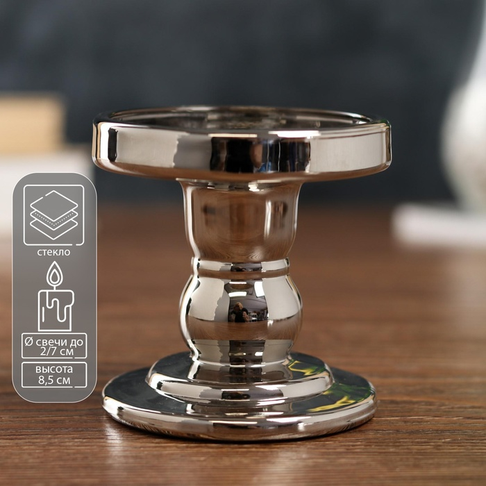 Подсвечник стекло на 1 свечу "Подиум" серебро хром 8,5х8,5х8,5 см