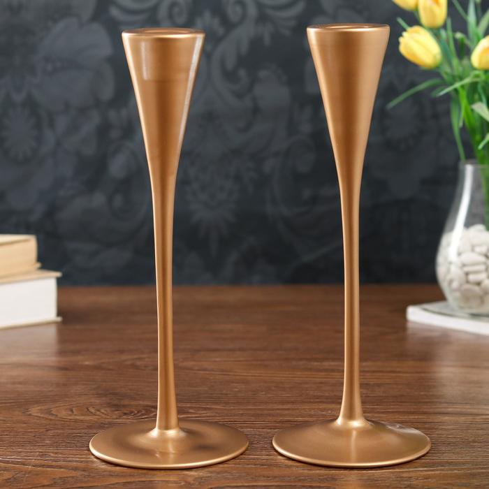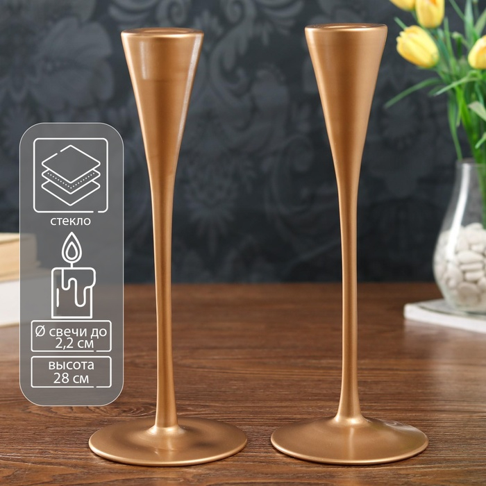 Подсвечник стекло "Узкий бокал" золото матовое набор 2 шт 28х10,8х10,8 см