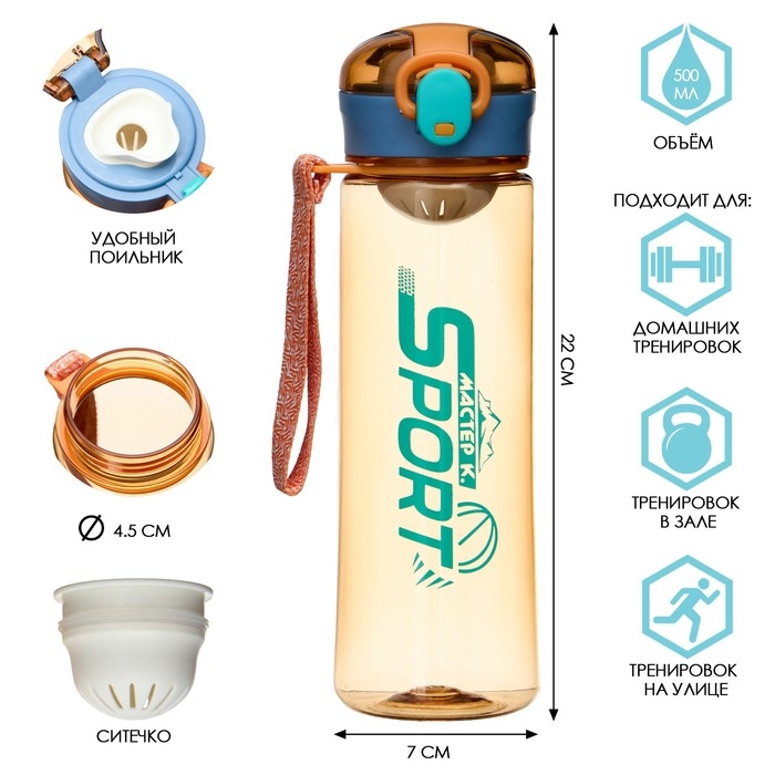 Спортивная бутылка для воды идеально подойдет для всех, кто ведет активный образ жизни. Это стильный аксессуар, который не только позволит вам утолить жажду, но и станет незаменимым атрибутом для занятий спортом, туризма и пеших прогулок. С этой спортивной бутылкой вы всегда будете иметь возможность поддерживать свой организм правильным уровнем водного баланса. Она станет вашим верным спутником как на тренировках, так и в повседневной жизни. Благодаря ее удобной форме и вместительности в 500 мл, она легко помещается в сумке или рюкзаке. Эта бутылочка для воды идеальна для использования в школе и на спортивных занятиях детей и малышей.