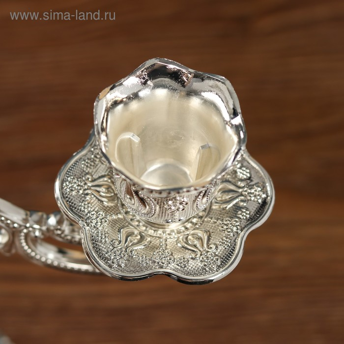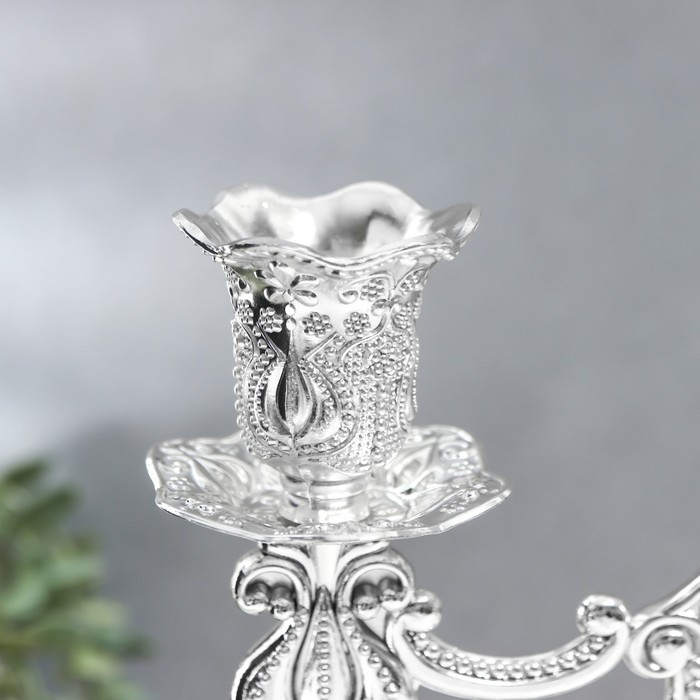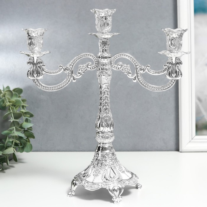 Подсвечник металл на 3 свечи "Узорный" серебро 10х25х26 см