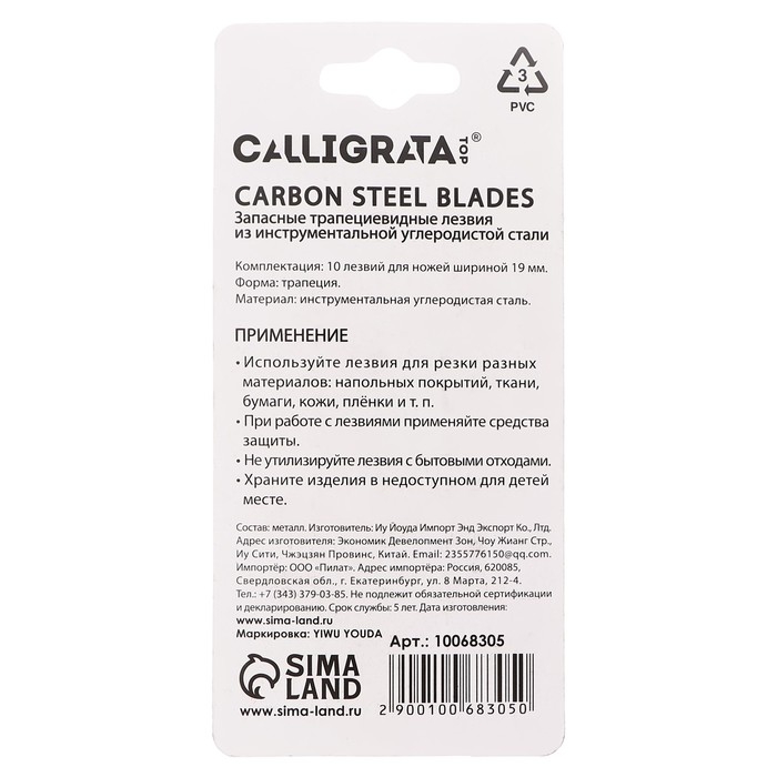 Набор лезвий для трапециевидных ножей 10 штук, 19мм