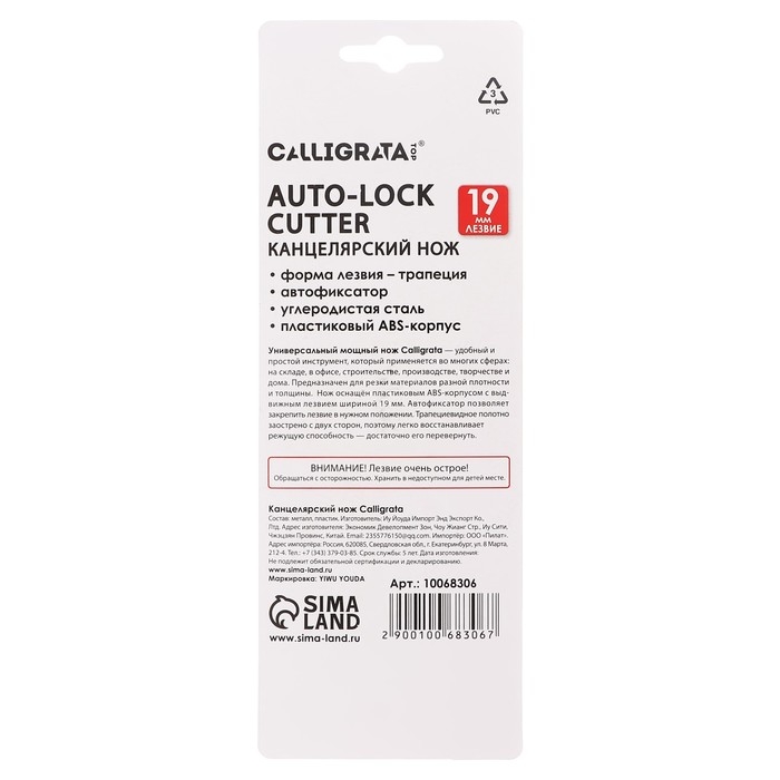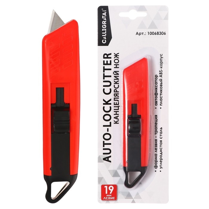 Нож универсальный трапециевидный 19мм, фиксатор, корпус пластик, TOP