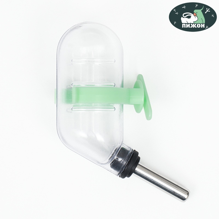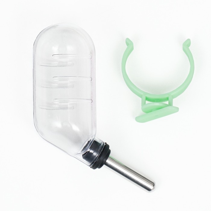 Поилка для грызунов с металлическим носиком, 60 мл, прозрачная с зелёным крплением