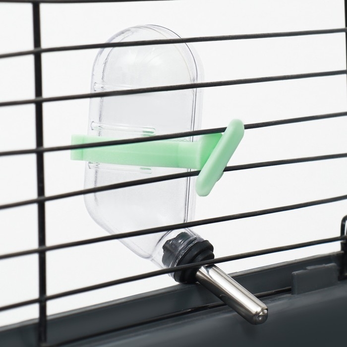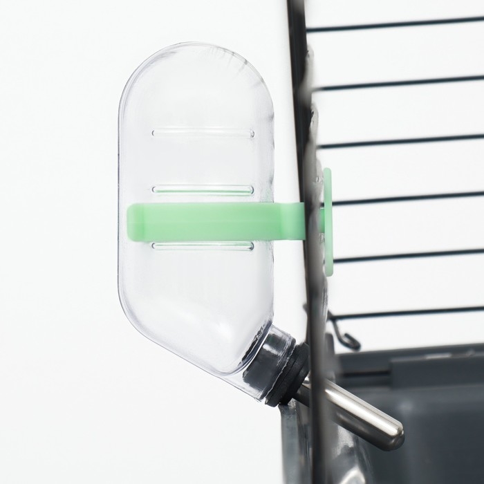 - Удобное крепление: зелёное крепление надёжно фиксирует поилку на клетке, предотвращая её случайное падение и обеспечивая лёгкий доступ к воде для питомца.