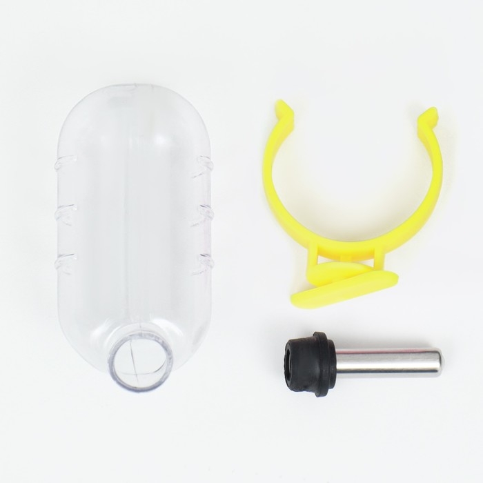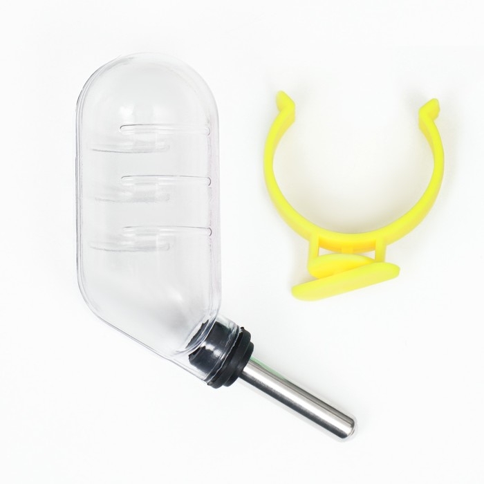 Поилка для грызунов, 60 мл, прозрачная с жёлтым креплением