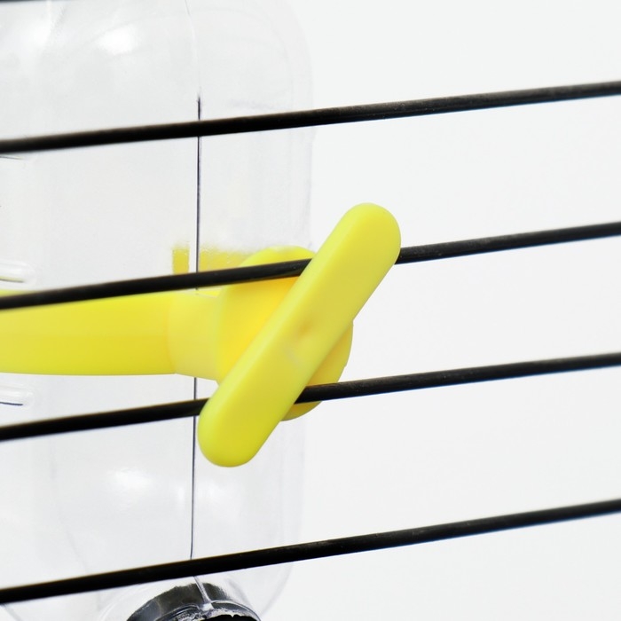 - Жёлтое крепление: яркий и заметный цвет крепления не только украшает клетку, но и облегчает установку и снятие поилки.