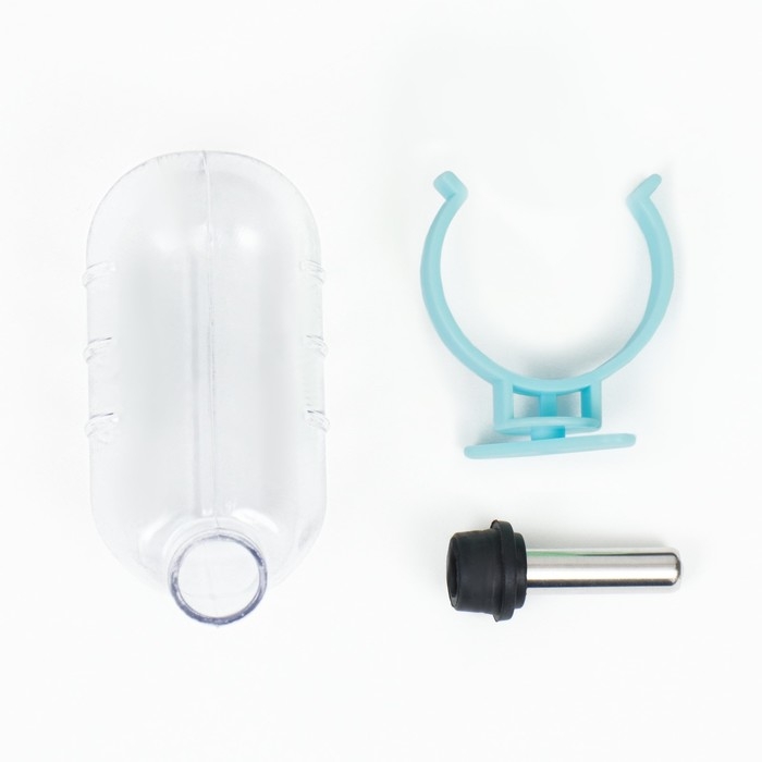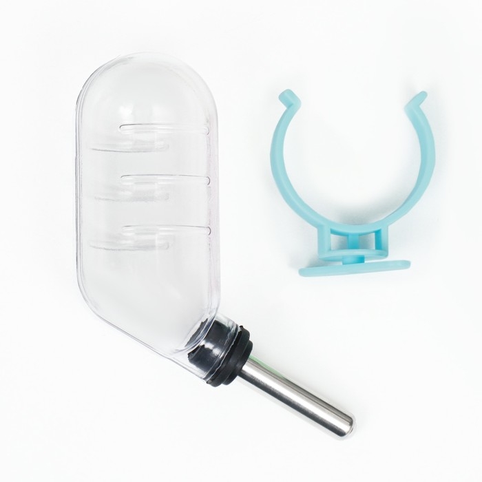 Поилка для грызунов с металлическим носиком, 60 мл, прозрачная с голубым крепление