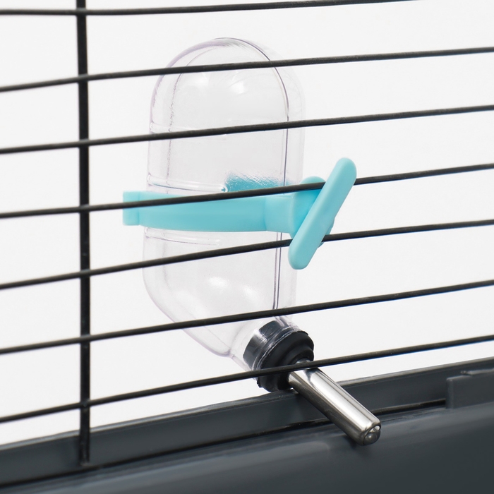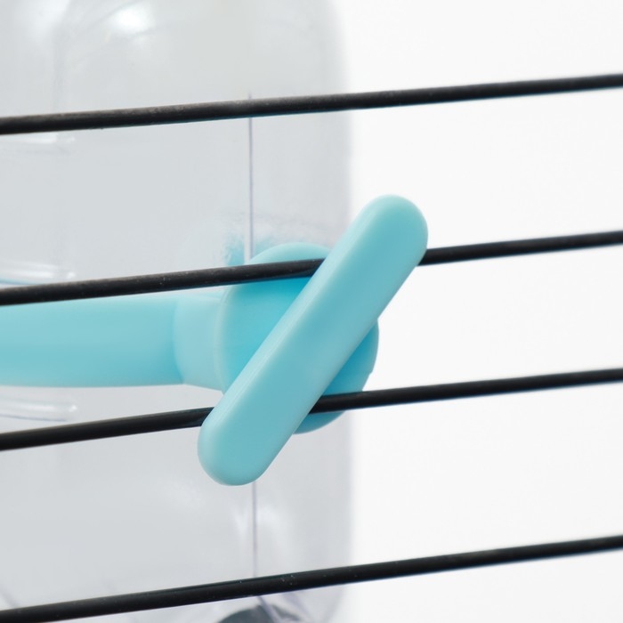 - Удобное голубое крепление: позволяет надежно зафиксировать поилку в клетке, исключая её случайное выпадение.