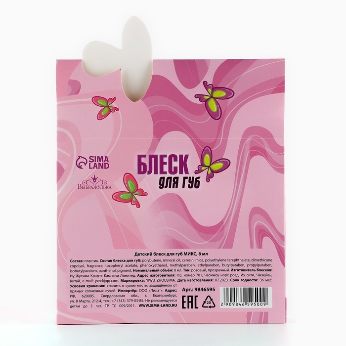 Детский блеск для губ «Нежность», 8 мл, МИКС