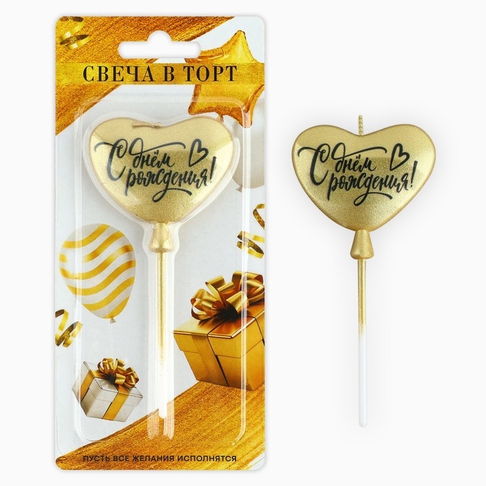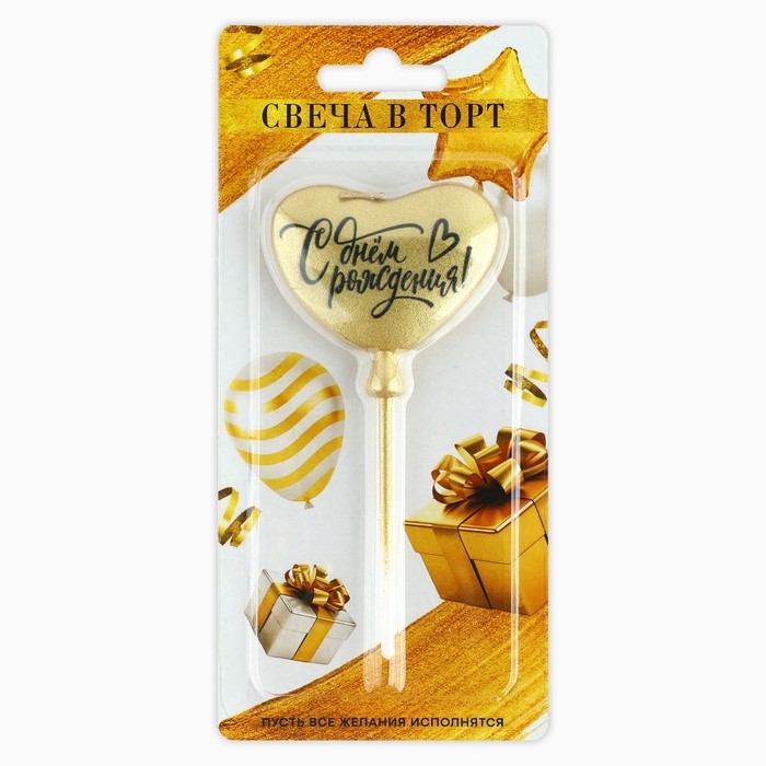 Свеча для торта «С днем рождения», золотая, 5,5 х 12 см