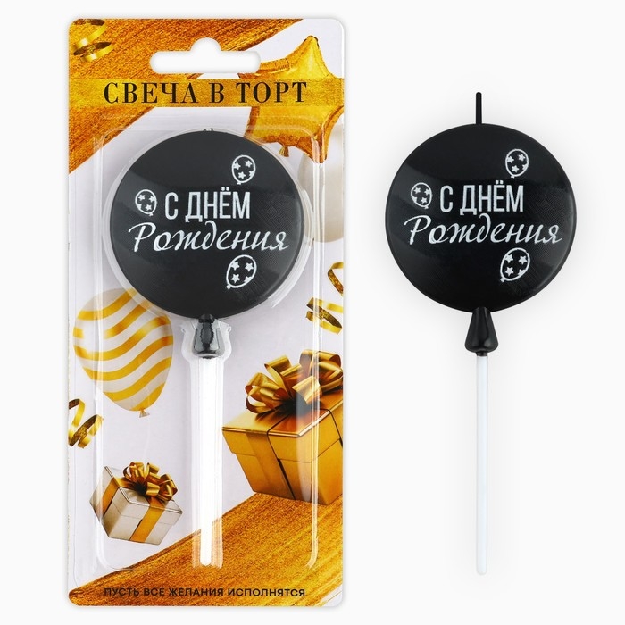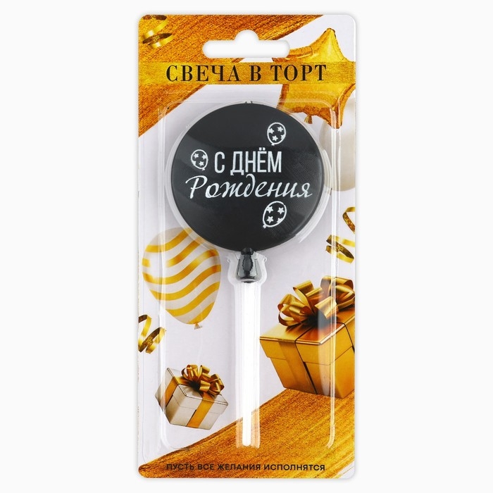 Свеча для торта «С днем рождения» чёрная 5,5 х 12 см
