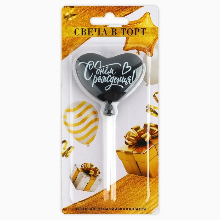 Свеча для торта «С днем рождения» чёрная, 5,5 х 12 см