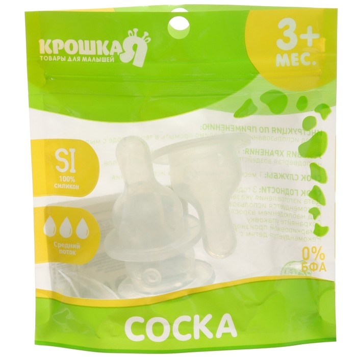 Соска на бутылочку, антиколиковая, от 6 мес., Крошка Я, широкое горло, медленный поток, Ø50 мм.