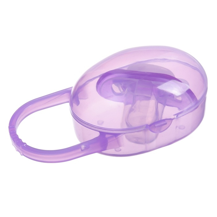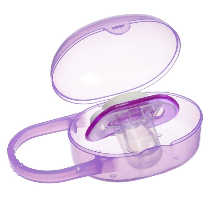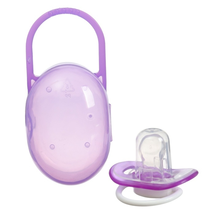 Соска - пустышка силиконовая ортодонтическая, от 3 мес., с колпачком, в контейнере, цвет фиолетовый