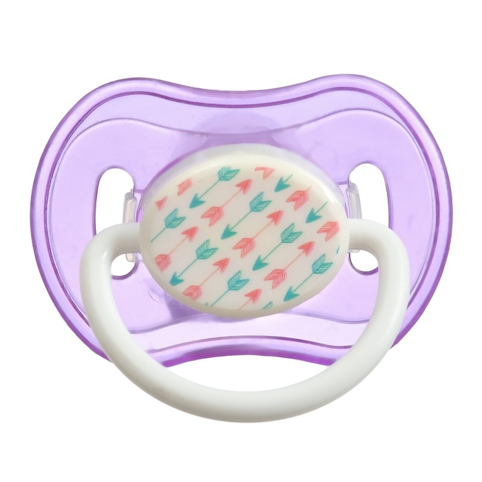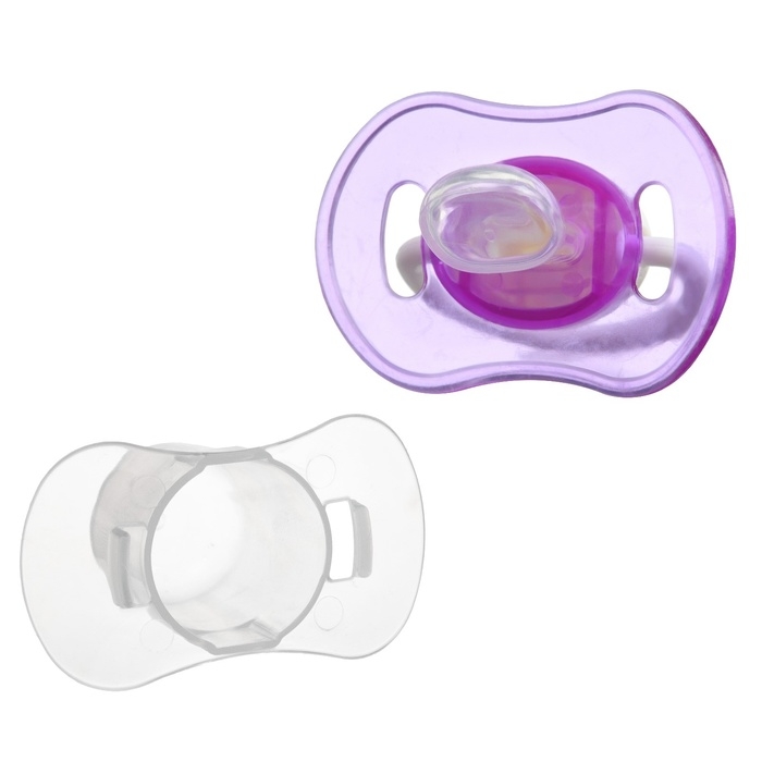 Соска пустышки силиконовая и имеет анатомическую форму, специальные вентиляционные отверстия на пустышке улучшают циркуляцию воздуха не раздражают кожу малыша и не оставляют следов и опрелостей. Создана для удовлетворения естественного сосательного рефлекса малышей. Пустышка анатомической формы имеет немного сплюснутый сосок, благодаря чему прилегает к языку.