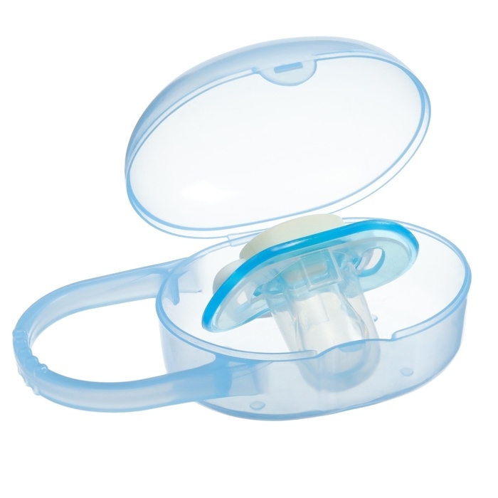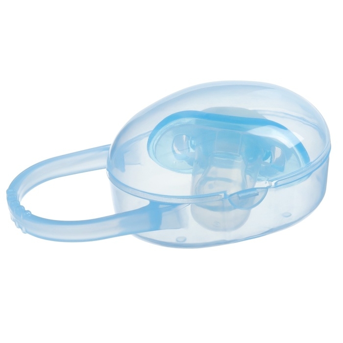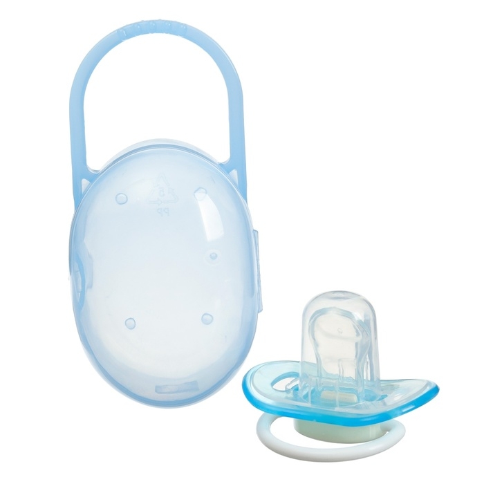 Соска - пустышка силиконовая ортодонтическая, от 3 мес., с колпачком, в контейнере, цвет голубой