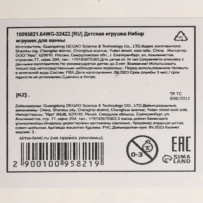 Качество товара подтверждается сертификатом соответствия ЕАС. Предназначено для детей с 3 лет.