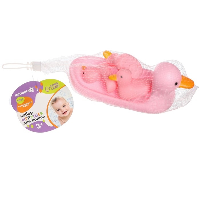 Набор резиновых игрушек для ванны «Мыльница: розовые уточки», 4 шт., 14 см, Крошка Я