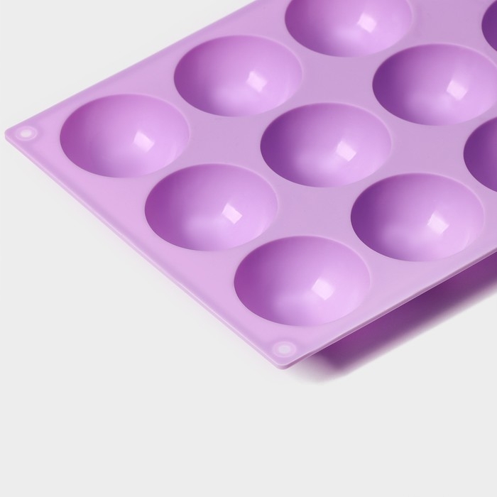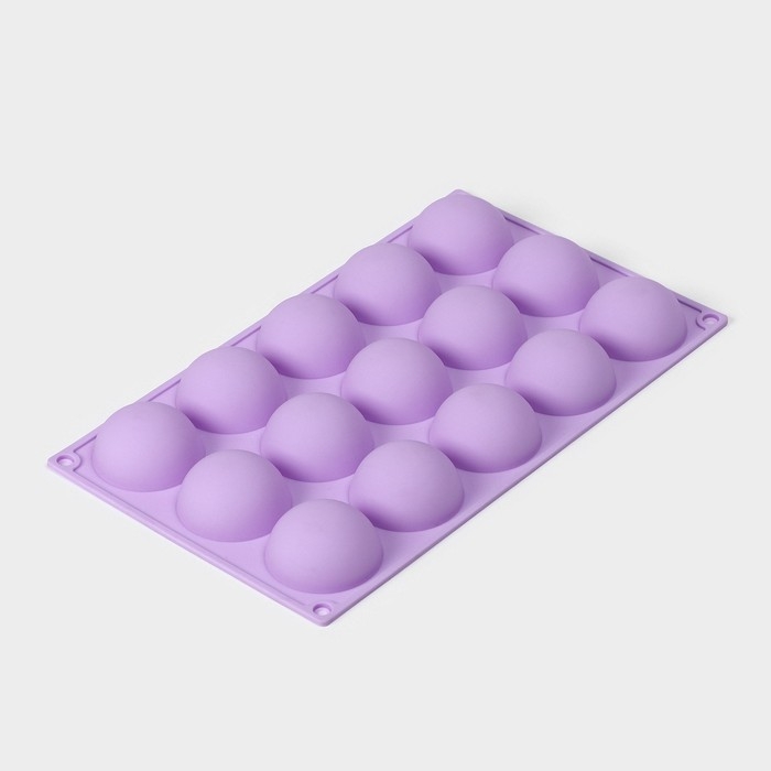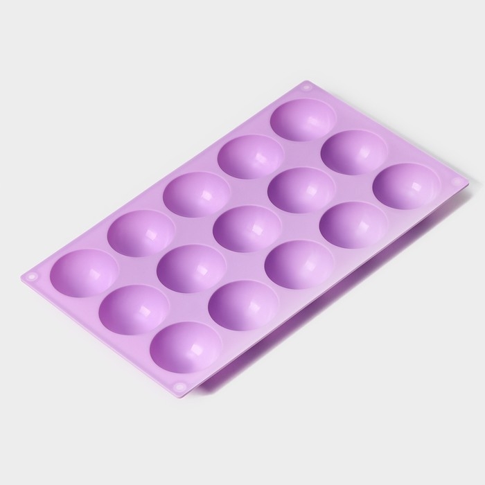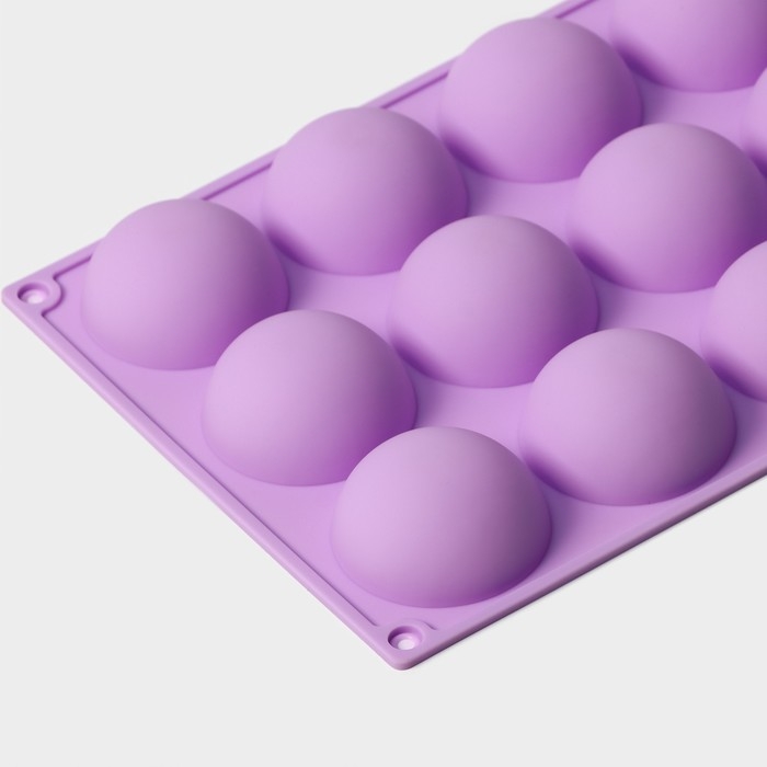 Форма для выпечки Доляна «Фигуры. Полусфера», силикон, 28×16,5×2,3 см, 15 ячеек (d=4,9 см), цвет сиреневый