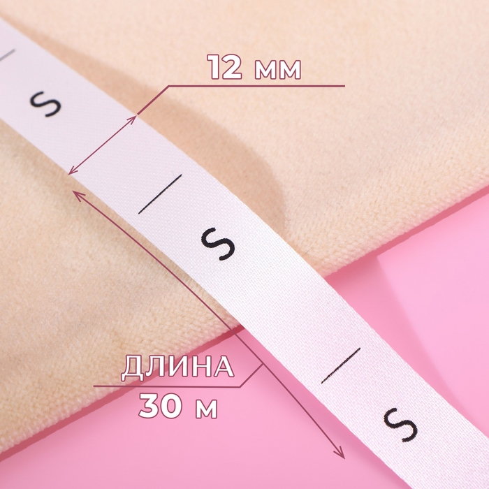 Размерник сатиновый, «S», 1000 шт, 12 мм, 30 м, цвет белый