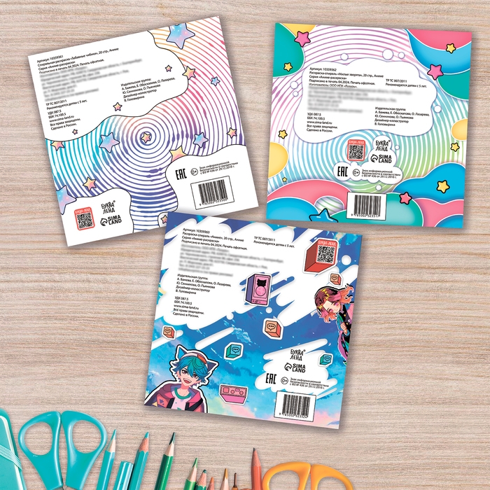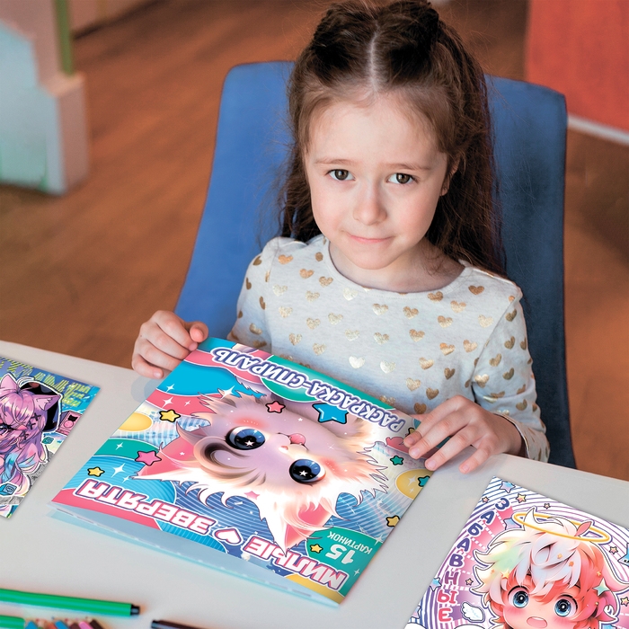 Набор спиральных раскрасок, 3 шт. по 20 стр., Аниме