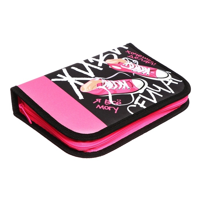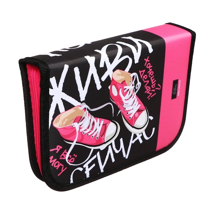 Пенал 3 секции, вкладка внутри, 140 х 210 х 40 мм, тканевый, Calligrata TOP Block "Кеды"