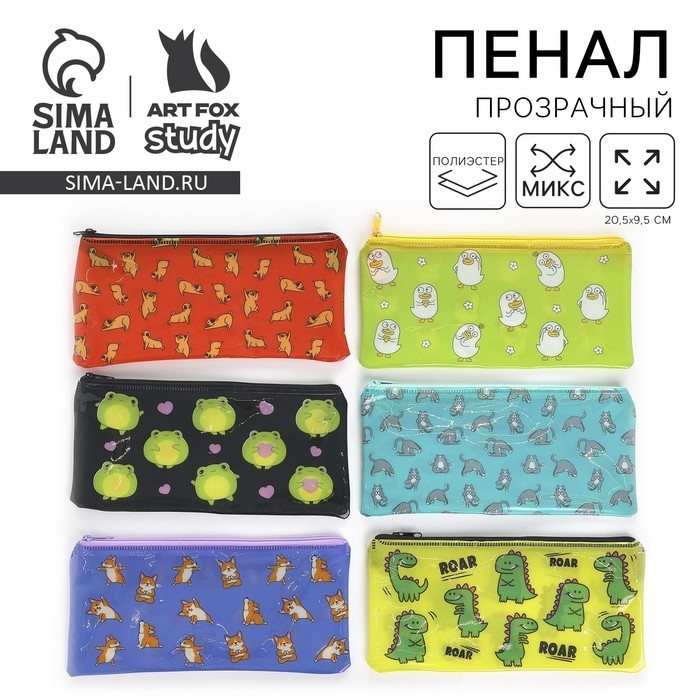 Пенал школьный "Совы", на молнии, МИКС