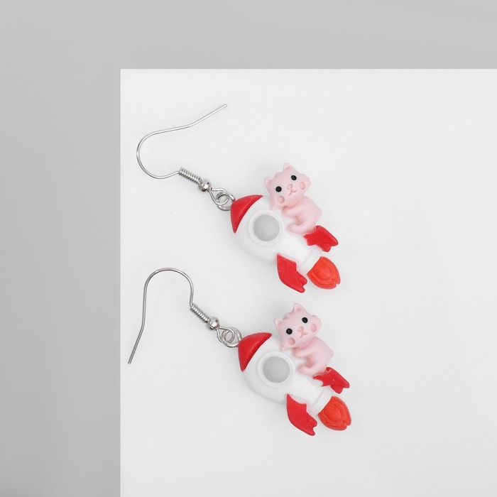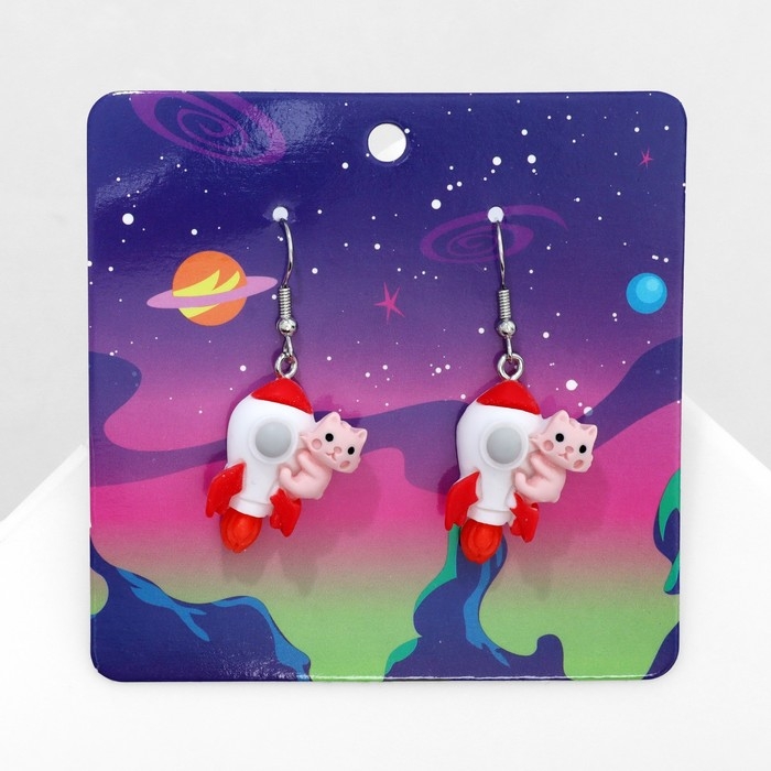 Серьги ассорти «Радость» коты на ракете, цветные в серебре