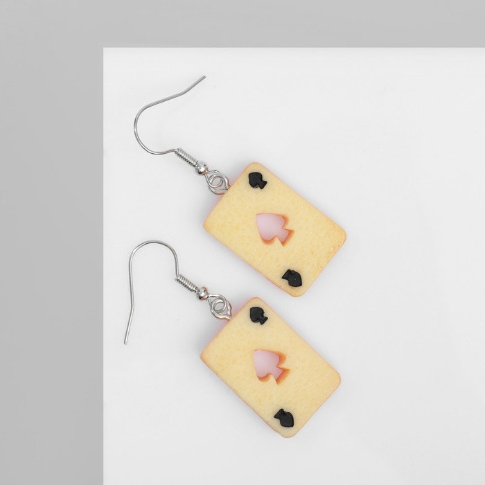 Серьги ассорти «Радость» карты, пики, цвет бежевый в серебре