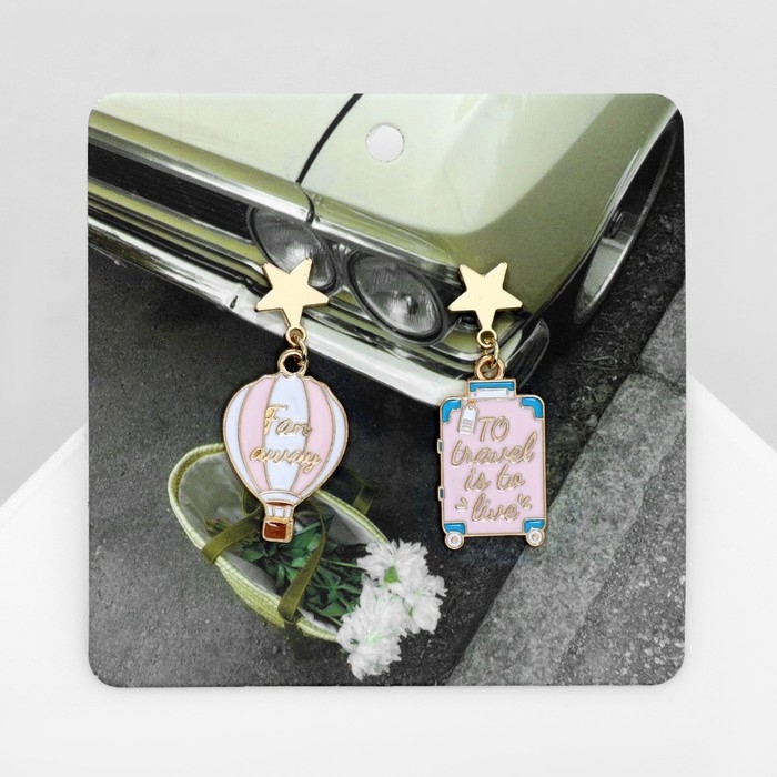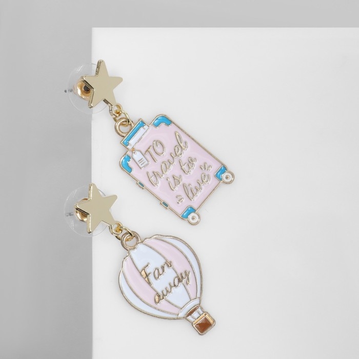 Серьги эмаль «Путешествие» воздушный шар, цвет розовый в золоте
